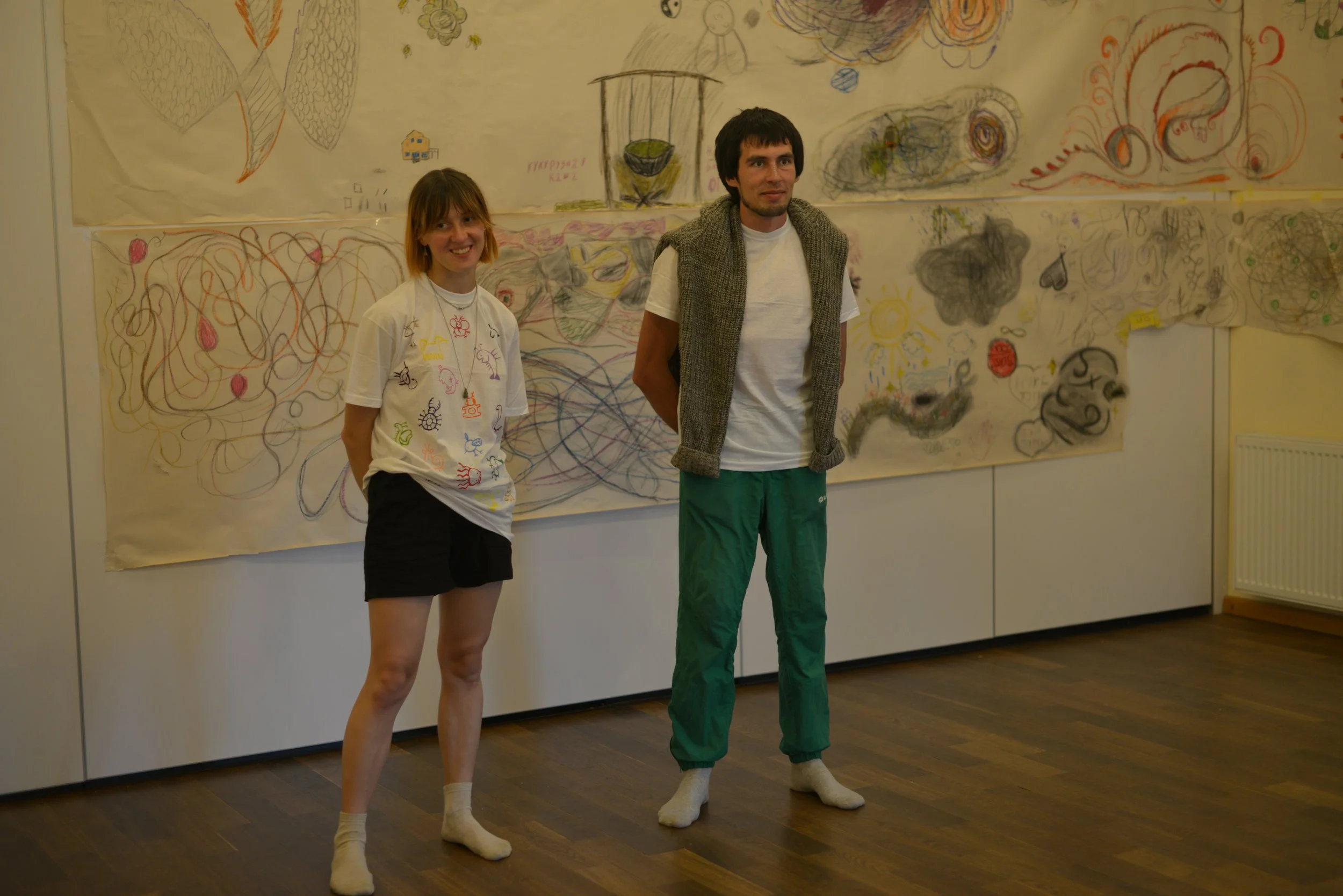 Nastya Malkyna und Genia Koroletov (oben) sind Künstler und Kunstpädagogen aus Luhansk, sie leben seit Kriegsbeginn zu Gast bei Longo mai in Nyzhne Selyshche und haben die 10 Tage mit den Jugendlichen und den angereisten Betreuer.innen verbracht, sie waren Teil des Teams. Im Gespräch haben sie uns ihre Eindrücke mitgeteilt.