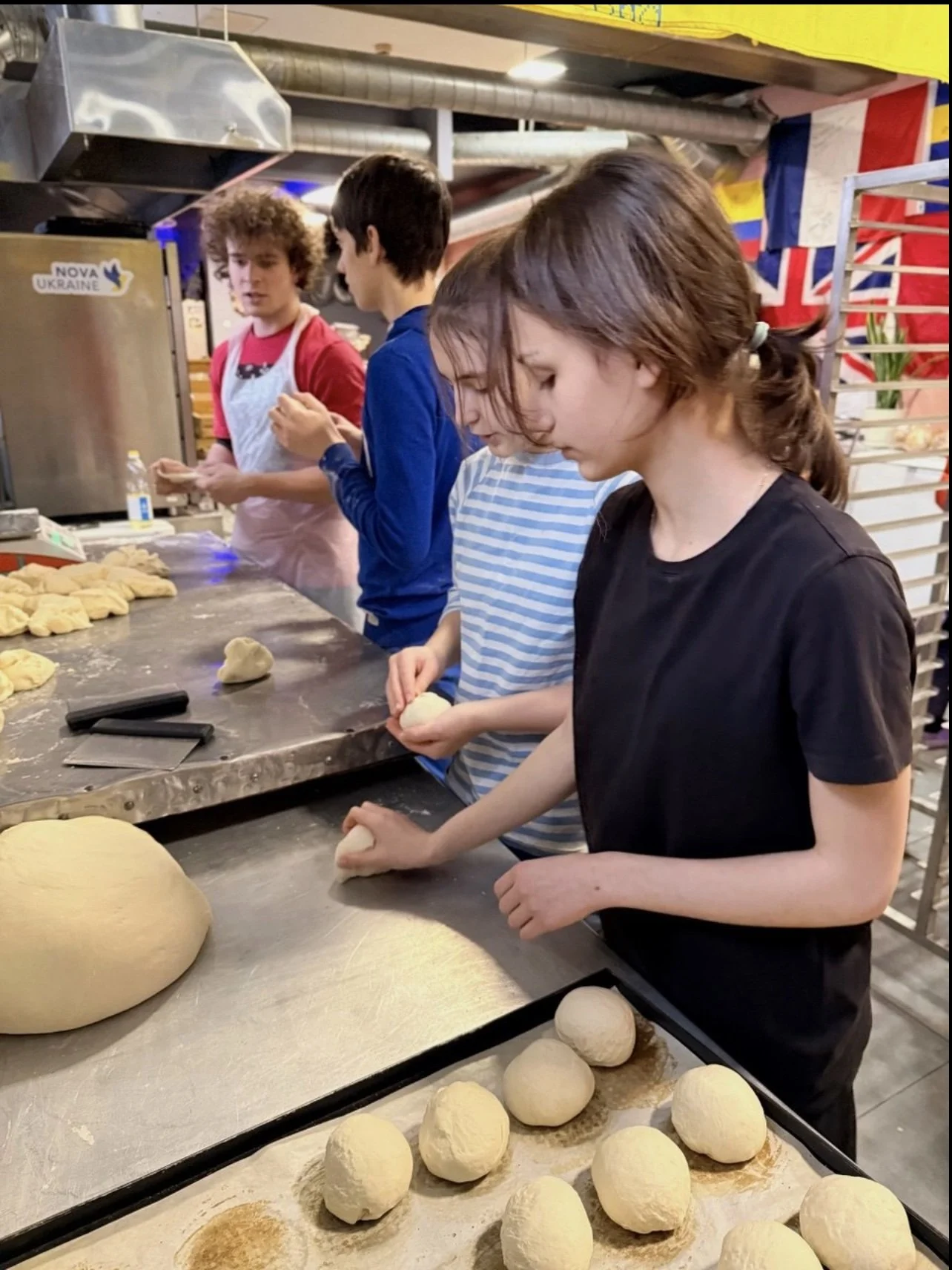 Mit einer Gruppe von Freiwilligen kochen sie täglich warme Mahlzeiten und Brot für bis zu 1.500 Menschen. Die meisten Mahlzeiten werden an Krankenhäuser in Charkiw geliefert.