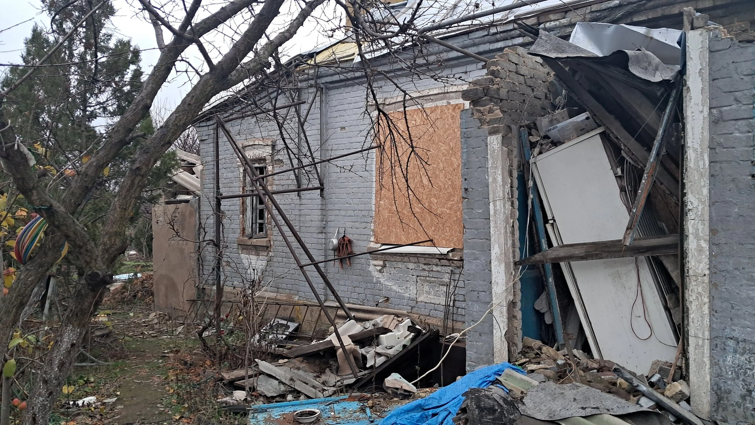 Das Haus von Vanyas Familie wurde zusammen mit den Nachbarhäusern zerstört. Es ist von einem großen Garten mit Obstbäumen umgeben. Drinnen, zwischen den Trümmern, liegen noch jede Menge Möbel und Haushaltsgeräte. Die städtische Kommission hat das Haus für nicht wiederaufbaubar erklärt.