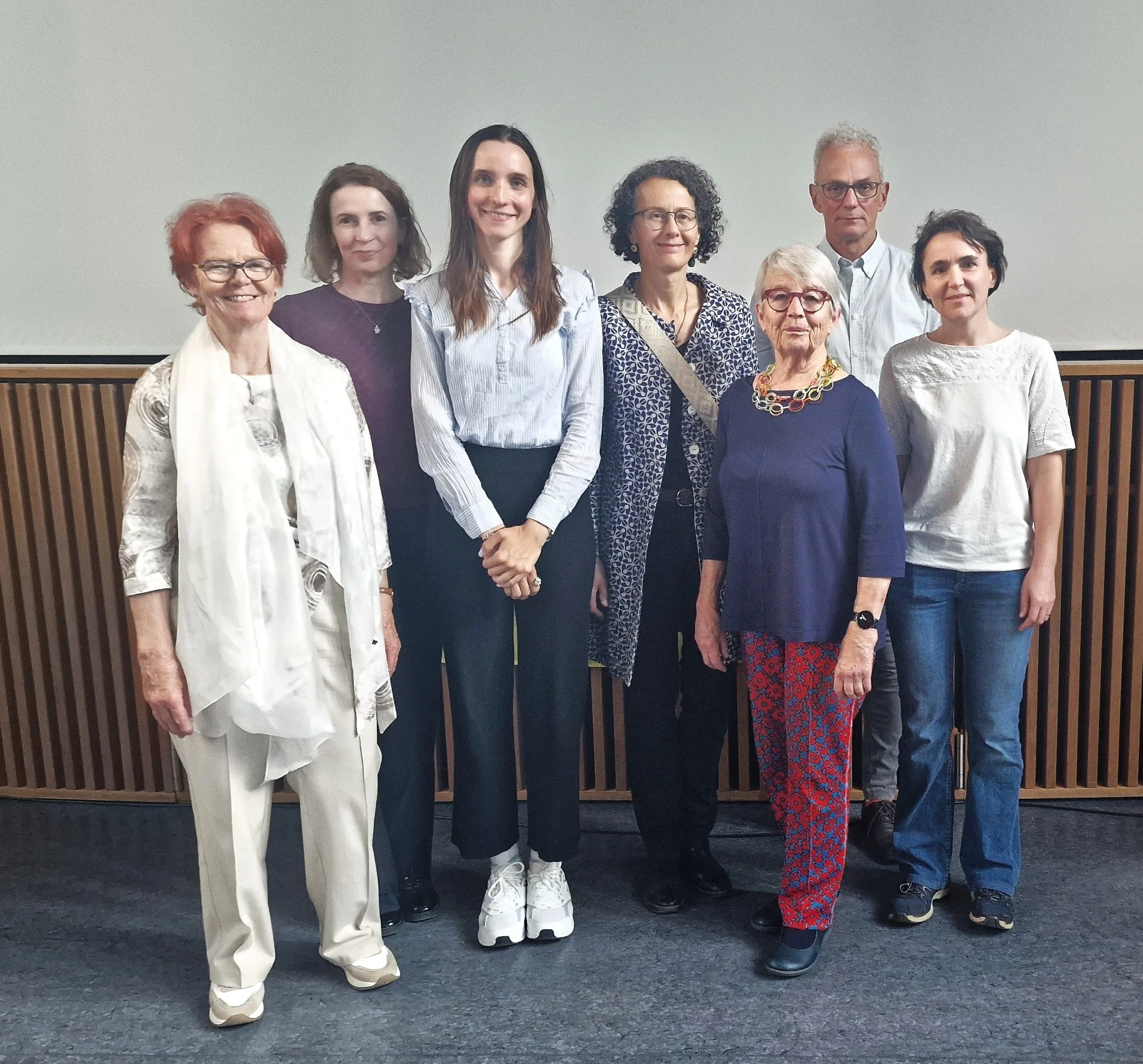 Von links nach rechts: Henny Graf, Lesja Levko, Diana Schenkel, Ursula Stamm, Cécile Stirnimann, Jürgen Kräftner, Salome Stadler.
